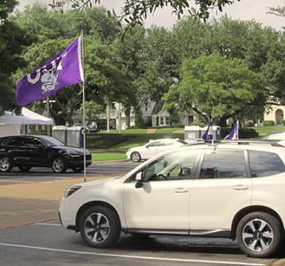 TCU Alums Bob Dixon and Cathy Johnson celebrated recent birthdays at the TCU-Iowa State Midnite Madness tailgate.